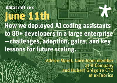 In this session, datacraft shares their return of experience (REX) on deploying AI coding assistants to over 80 developers within a large enterprise. They begin by presenting the context, the initial objectives, and the methodology used to roll out the solution at scale. We then walk through the deployment journey, highlighting key challenges, adoption strategies, and developer feedback. Finally, they detail the measurable results—both in terms of productivity and quality—and reflect on the gains, lessons learned, and areas for continuous improvement.