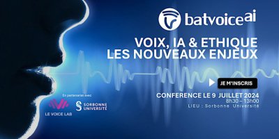 BatvoiceAI is pleased to invite you to a morning of reflection organized in partnership with Sorbonne University and Le Voice Lab and which will be held on Tuesday July 9 from 8:30 a.m. to 12:30 p.m. at the Sorbonne Center of AI, Pierre and Marie Curie Campus on the theme: