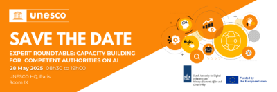 Expert Roundtable on Capacity Building for Competent Authorities on AI, which will take place on 28 May 2025 at the UNESCO Headquarters in Paris.