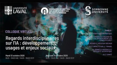 On Tuesday, October 13 and Wednesday, October 14, 2020, Sorbonne University, Université Laval and the International Observatory on the Societal Impacts of AI and Digital Technologies (OBVIA) are organizing an interdisciplinary virtual conference on the developments, uses and social issues of AI.