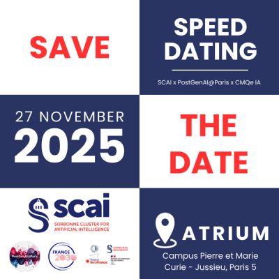 SCAI, PostGenAI@Paris and CMQe IA invite master and doctoral students of Sorbonne University, interested in Articifial Intelligence, to a meeting with companies looking to hire graduate students or recruit for internships in 2025.