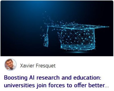 An article submited by Xavier Fresquet, Scai's deputy director, has been published on the official website of the European Union Digital Skills and Jobs Platform. It is entitled Boosting AI research and education: universities join forces to offer better programs and courses and presents in particular the 4EU+ Alliance and the THINKING.AI online course platform.