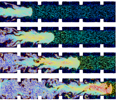A possible strategy for hybrid RANS/LES methods is to restrict the LES approach to specific regions of the com- putational domain where the RANS approach is considered less reliable. In some situations, the domain can be re- stricted to LES computations only, provided that an equiv- alent boundary condition is defined, e.g., modeling the re- gion upstream from the region of interest; this corresponds typically to the « notional nozzle » approach employed for the simulation of under-expanded jets (e.g., [5]). In other situations, so-called zonal or seamless hybrid RANS/LES methods are used. Whichever strategy is chosen, in the absence of hydrodynamic instabilities naturally present in the computational domain, or when these instabilities are not sufficiently resolved, the quality of LES predictions de- pend strongly on the velocity fluctuations prescribed in the boundary conditions or in the RANS/LES transition zone.